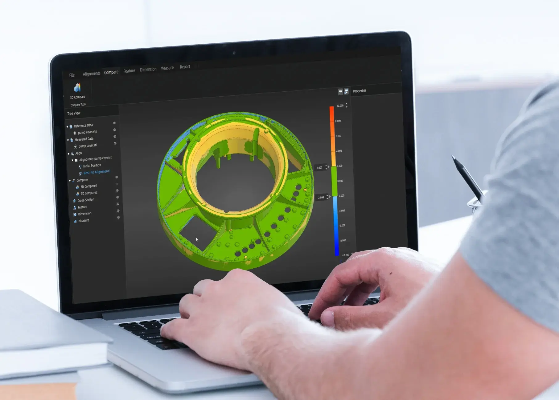 SHINING3D Inspect is an industrial 3D inspection module developed for precise analysis of high-accuracy scan data in professional manufacturing environments. The software is certified by PTB for dual measurement accuracy and enables users to perform accurate 3D comparison, dimensional analysis, GD&T measurement, and structured inspection reporting from scanned parts.