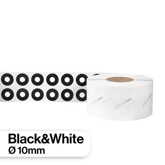 AESUBdots Black & White Targets 10 mm are adhesive markers used for precise alignment and registration during 3D scanning and photogrammetry. Easy to apply and highly reliable for improving point cloud accuracy.