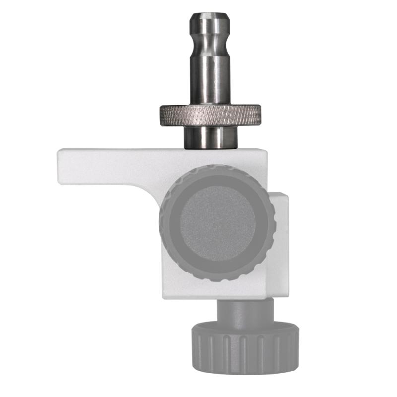 Stainless steel adapter with M8 male thread and Leica pin (Ø12 mm, 27 mm length). Length 50 mm, knurl Ø30 mm for easy screwing. Designed for use with prisms and reference spheres on railroad adapters (030-12661) in combination with Leica accessories. Delivery content: 1 adapter.