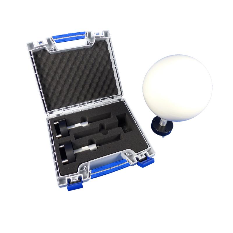 Set of 3 tripod adapters with claw system for XXL reference spheres (200 mm). Sphere center positioned at 196 mm (tilting axis of Leica/Trimble total stations). Includes high-quality transport case with foam insert. Ideal for creating fixed reference points, integrating ground marks, and placing spheres in natural environments.