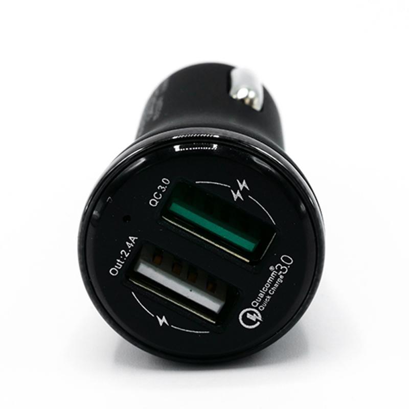 This car charger includes a USB-A to USB-C cable. It supports 12-24 V input, has two USB-A ports: one supports Qualcomm Quick Charge 3.0, the other 2.4 A. Compatible with Algiz RT8, RT10, Nautiz X41, X6