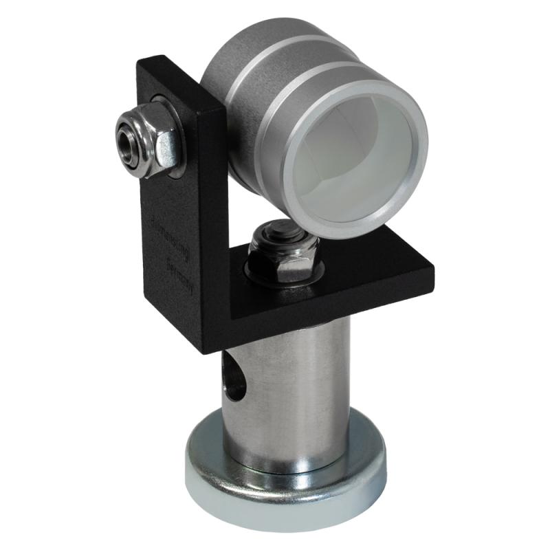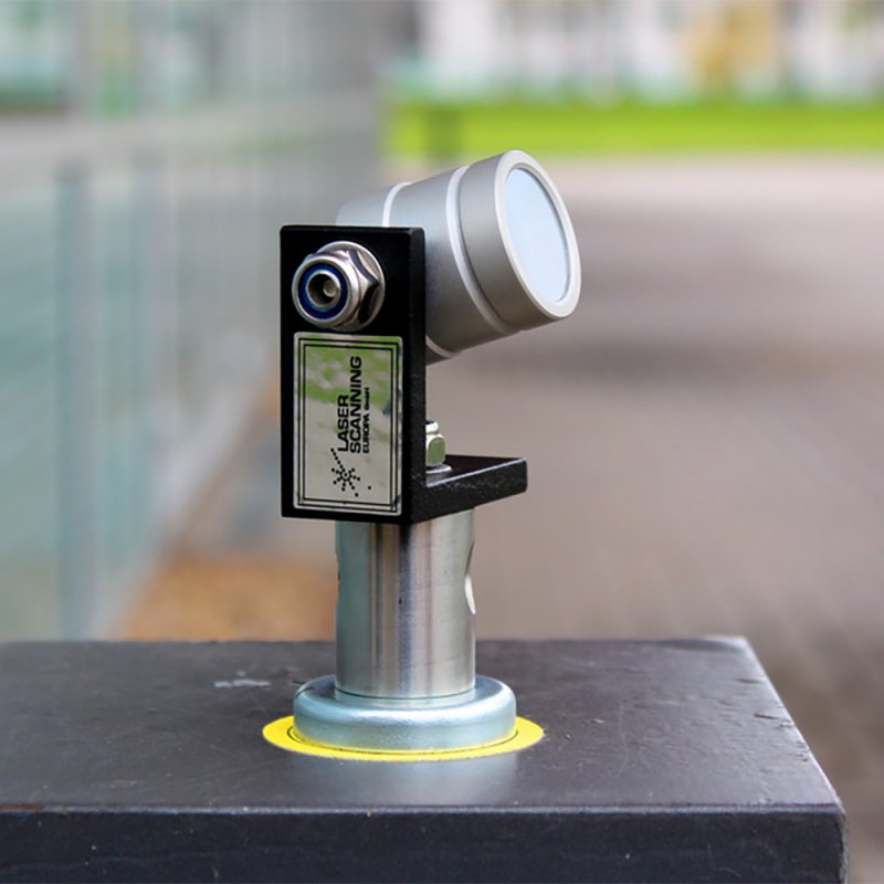 Mini prism with prism constant k = -34.4 mm (Leica: 0). Designed for accurate surveying of reference spheres with total stations or tachymeters. Enables fast determination of reference sphere centers and integration into global coordinate systems. Mounted via M8 threaded bolt or magnetic base. Fully compatible with Reference Sphere Sets Basic, Flexi, Traveler, and Deutsche Bahn Flexi. Delivery content: 1 mini prism incl. magnetic holder (M8/20 mm).