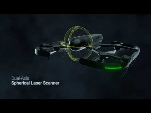 The onboard full-dome LiDAR scanner captures up to 420,000 points per second with a scanning range of up to 25 meters, producing dense and accurate point clouds for digital twin creation and infrastructure documentation.