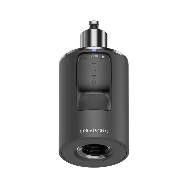 The adapter enables a fast, stable, and secure connection between a surveying device and the EMLID survey pole. It is compatible with the Reach RX2, RS4, and RS4 Pro receivers and ensures reliable coupling in the field.