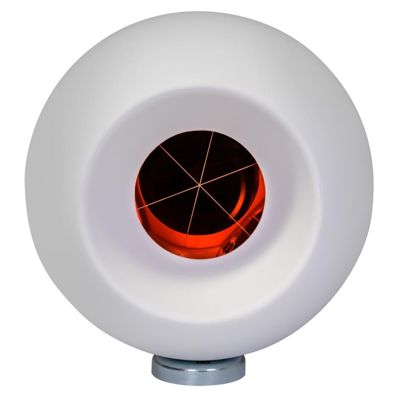 145 mm reference sphere with integrated prism for linking laser scan data and total station measurements. Prism constant k = -34.4 mm (Leica: 0). Weatherproof coating ensures optimal reflectivity. M8 female thread with magnet. Compatible with FARO Focus (Premium, Core, S, M series), Leica RTC360, BLK360, ScanStation P-series, Z+F IMAGER, GeoSLAM, Trimble TX5/TX8/X7, Surphaser, Artec Ray, Teledyne Polaris, Riegl (on request). Delivery content: 1 prism sphere.