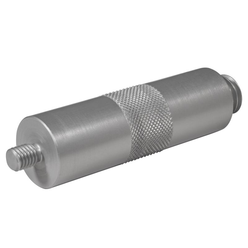 Aluminum adapter (100 mm) with 5/8" male thread and M8 male thread (10 mm). Designed to connect Ø145 mm reference spheres to prism poles with 5/8" female thread. Ensures precise center height registration. Compatible with Flexi, Basic, Traveler spheres and mini prisms. Delivery: 1 adapter.