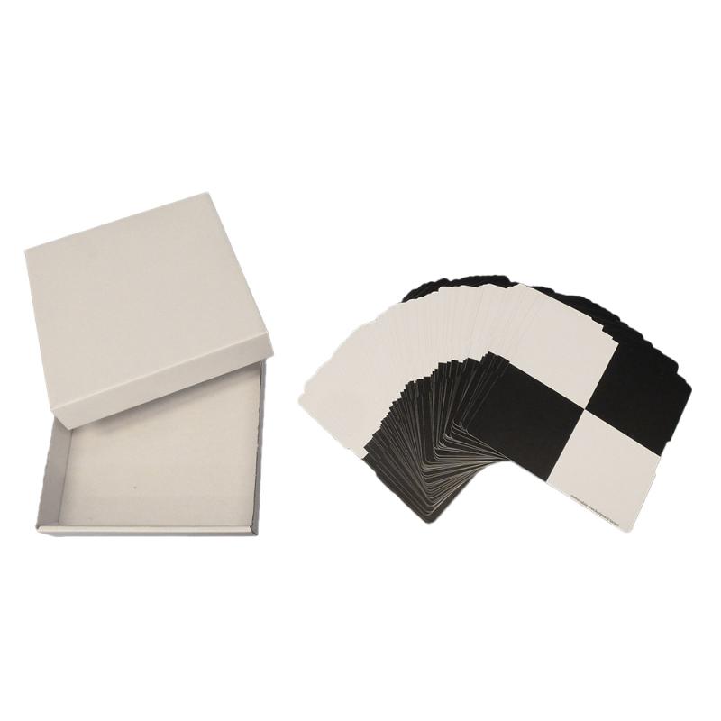 Pack of 100 durable checkerboard stickers with strong adhesive backing. Designed for 3D laser scanning and surveying reference points. Easy to apply on various surfaces, ensuring stability during measurements.