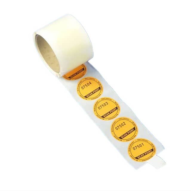 A pack of 100 self-adhesive stickers, Ø 50 mm with a printed ring Ø 40 mm matching magnets or reference sphere bases / mini prisms. Waterproof and weatherproof; adheres even to rough or fibrous surfaces. Center hole Ø 10 mm. Stickers are consecutively numbered for clear identification in registration workflows.