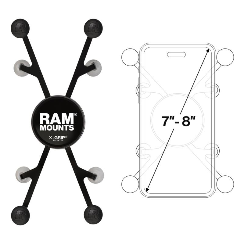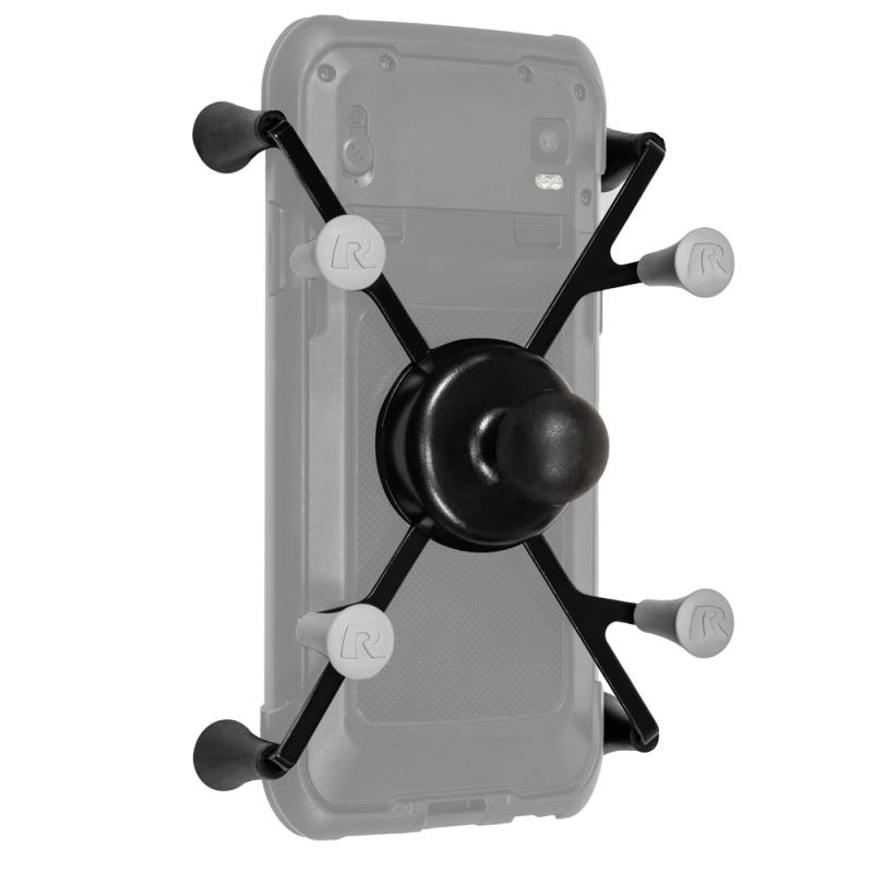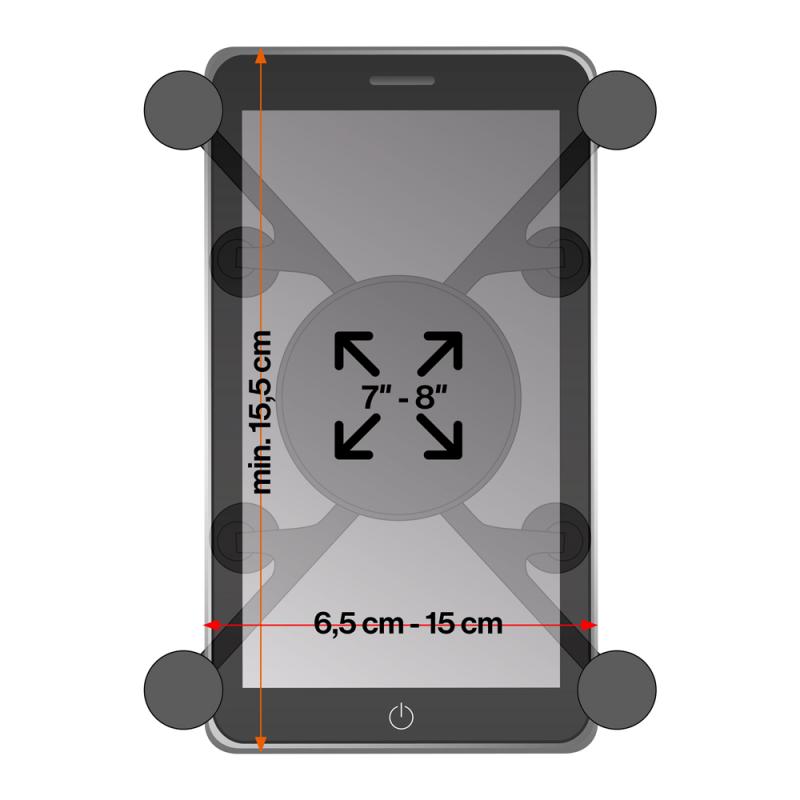 Universal set to attach a 7-8″ tablet securely to a GPS pole with diameter 1.60 cm to 3.81 cm. Includes spring-loaded X-grip holder, long connecting arm with ball joint, plastic clip fastener. Ideal for surveying, ensures safe transport and use of tablet during field work.
