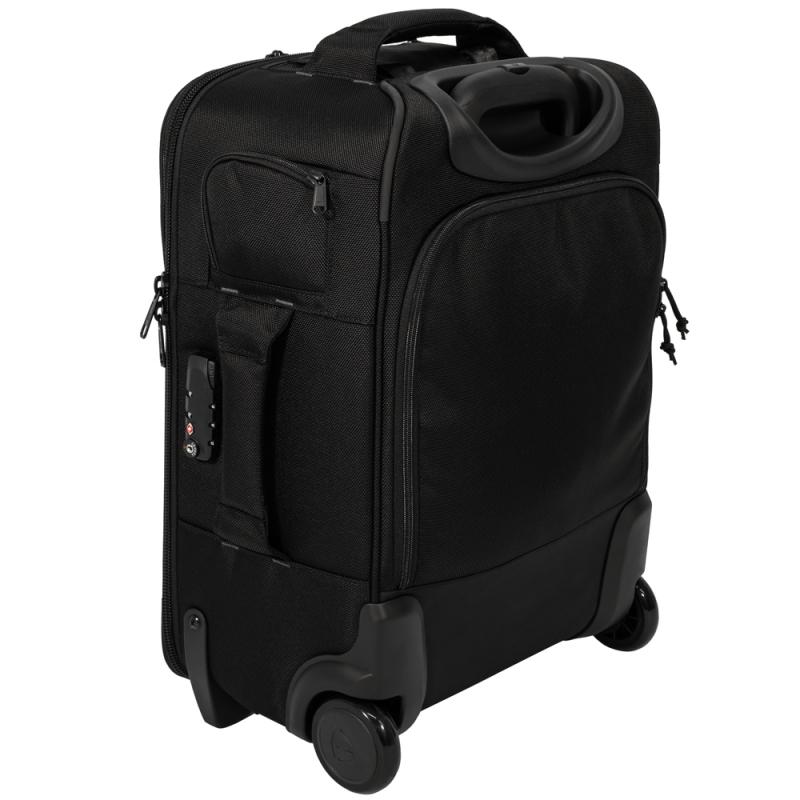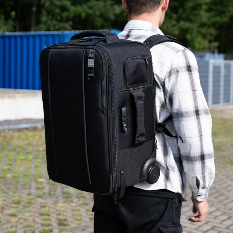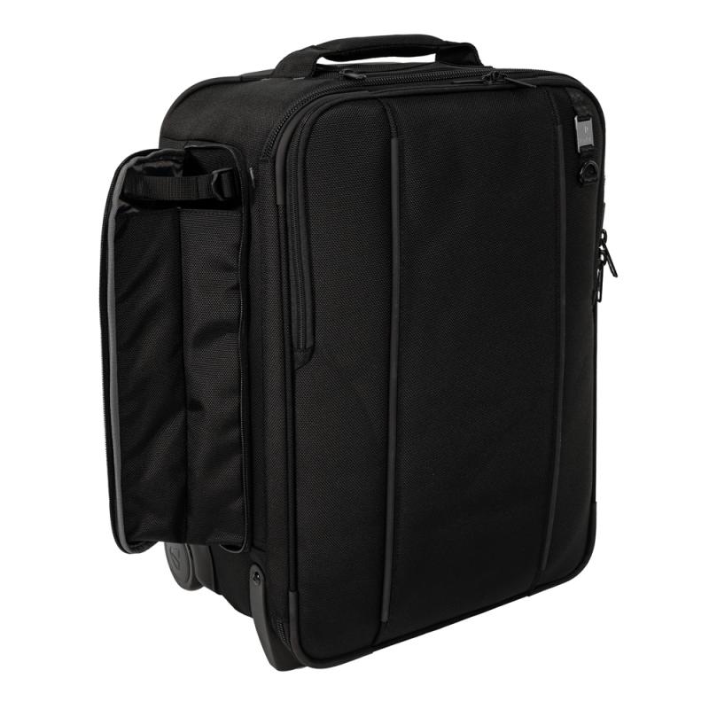 The trolley bag for FARO Focus provides secure protection and convenient transport of the laser scanner. It features a telescopic handle, shock-absorbing interior, and compartments for accessories such as batteries, cables, and a tablet.