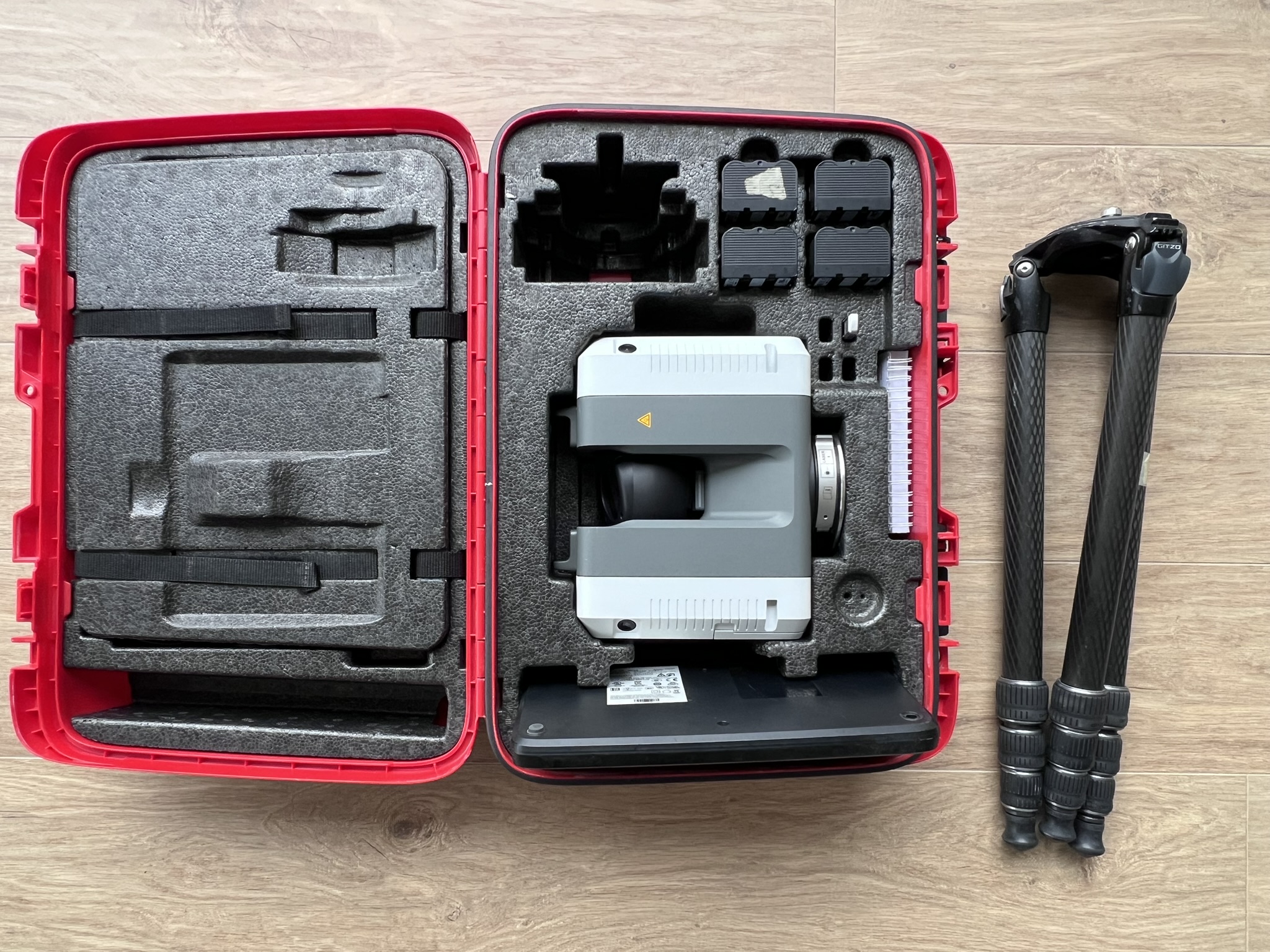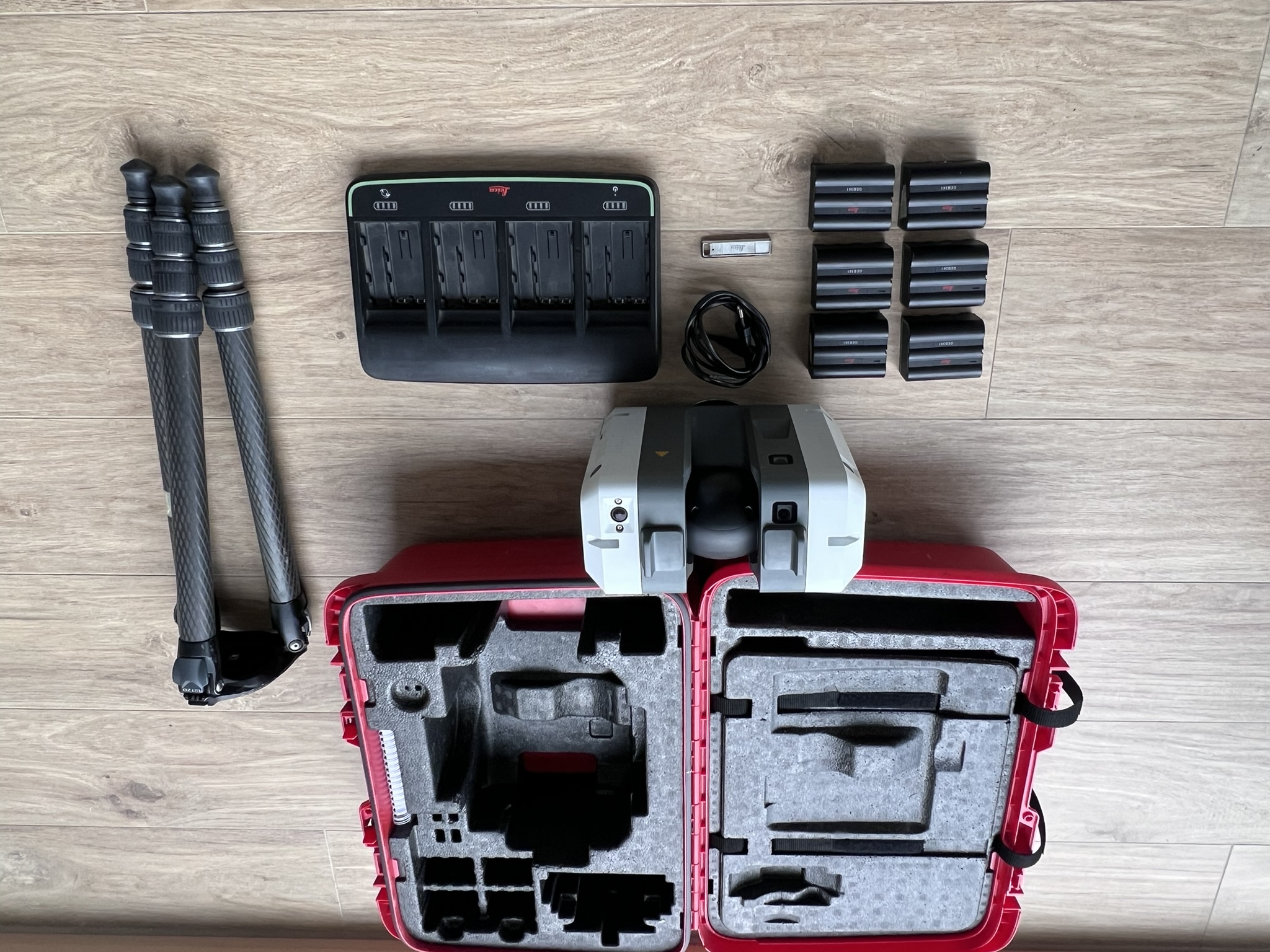 The RTC360 is known for high-speed scanning, automatic registration (VIS technology), and reliable field performance. Complete ready-to-work setup.