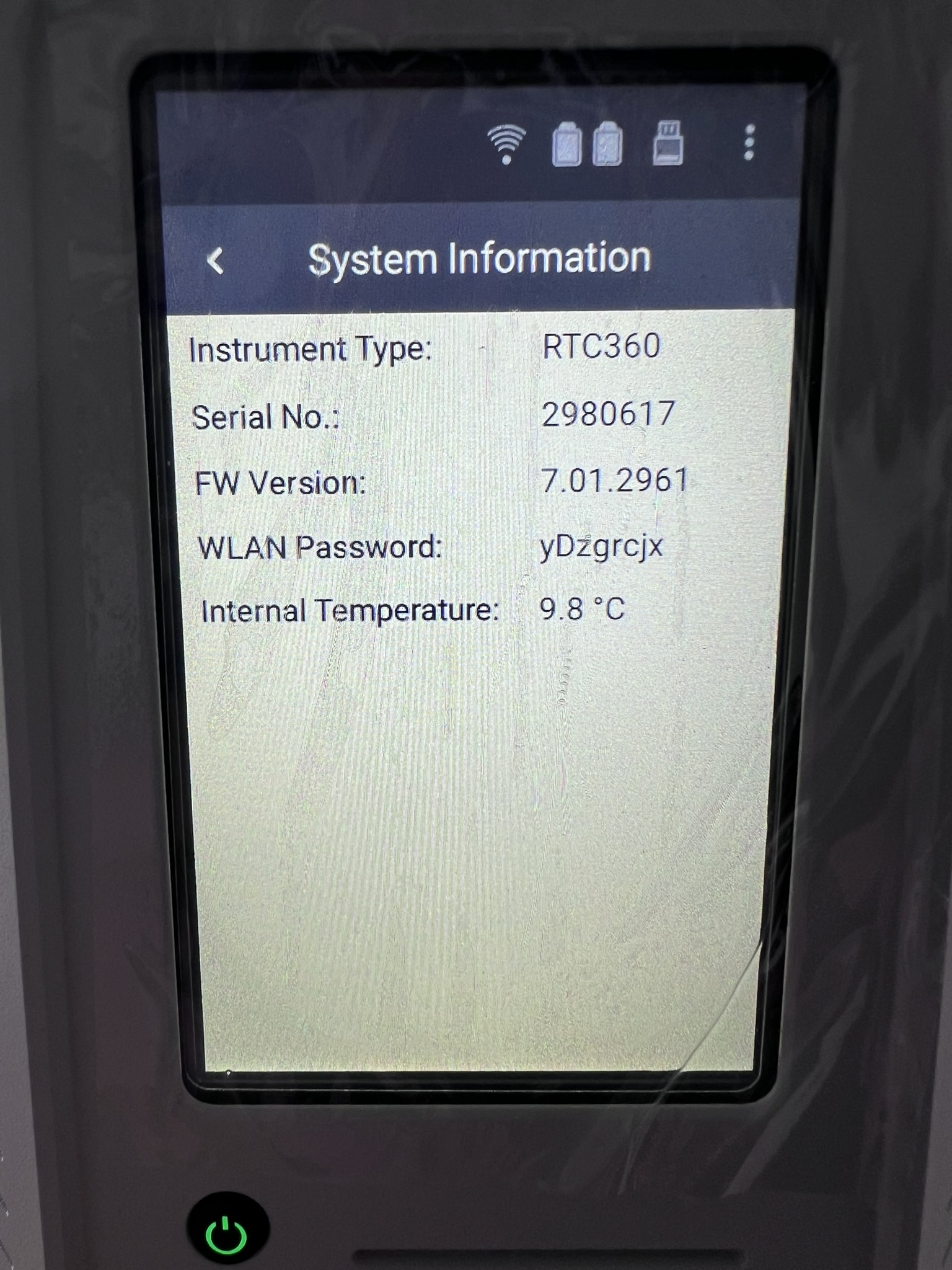 Leica RTC360 terrestrial laser scanner in used but well-maintained condition. The device powers on and operates normally (see system information screen in photos). Ideal for professional 3D documentation, BIM workflows, construction, and infrastructure projects.
