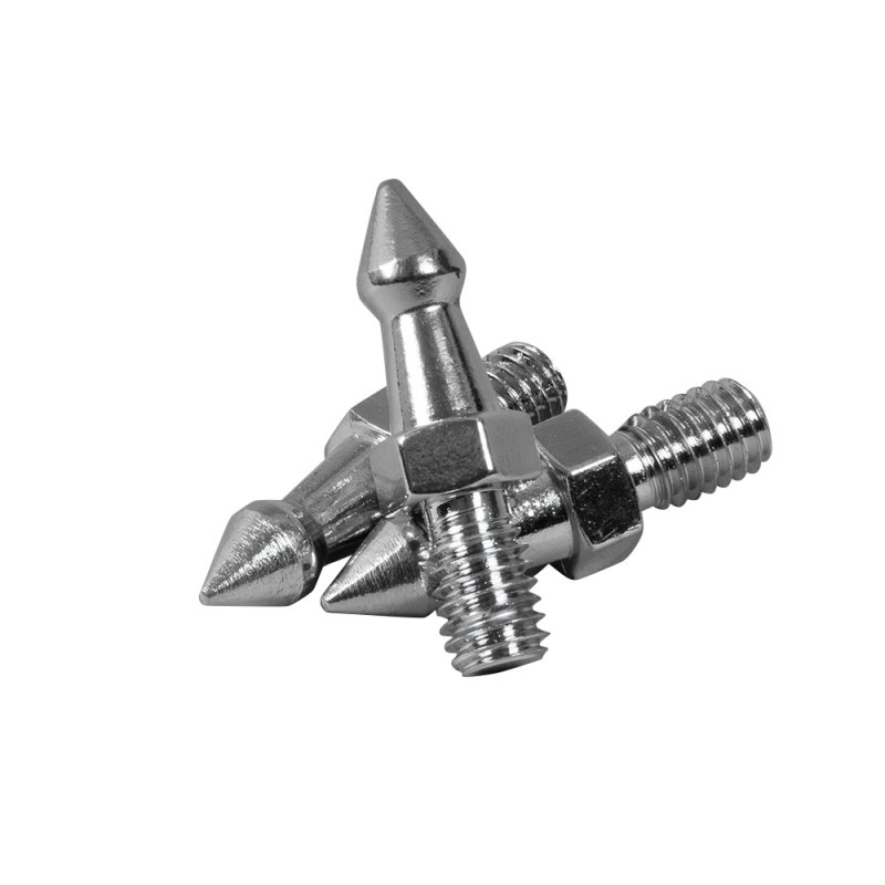 Set of 3 replacement spikes for carbon tripods. Designed for secure tripod stand on soft surfaces such as lawns or pavement cracks. Compatible with carbon tripods for FARO Focus and Leica BLK. Easy screw-in thread connection, durable metal construction.