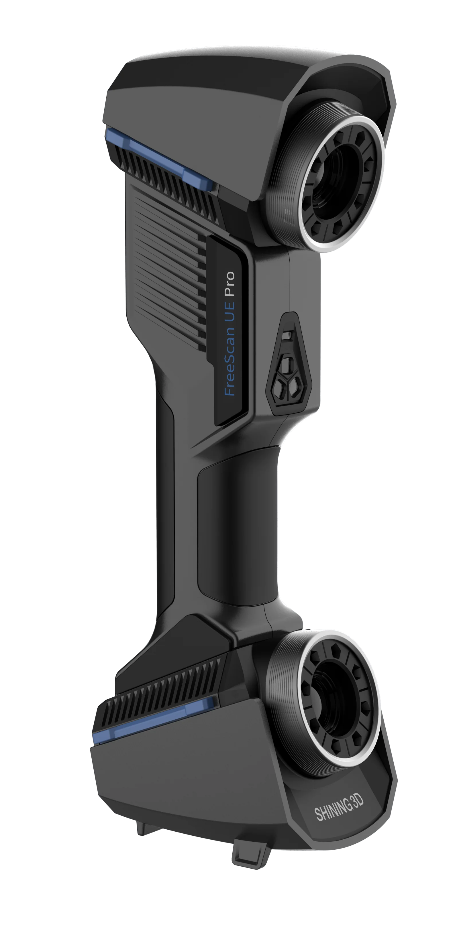 FreeScan UE Pro is a professional handheld metrology 3D scanner designed for high-precision industrial inspection, quality control, and reverse engineering. The system combines lightweight construction, metrology-grade accuracy, and built-in video photogrammetry to support both small-part detail capture and large-object scanning with reliable global precision.