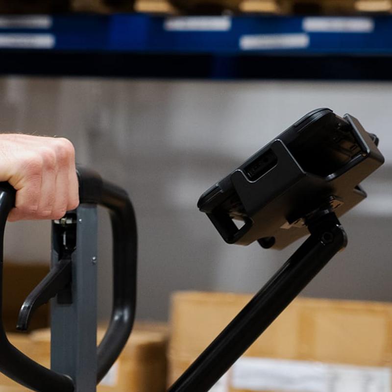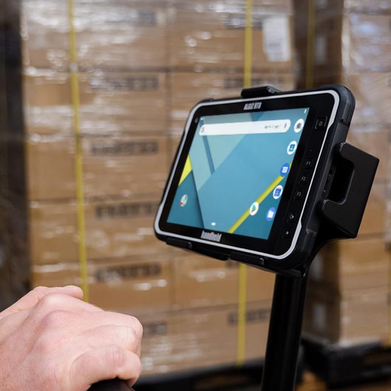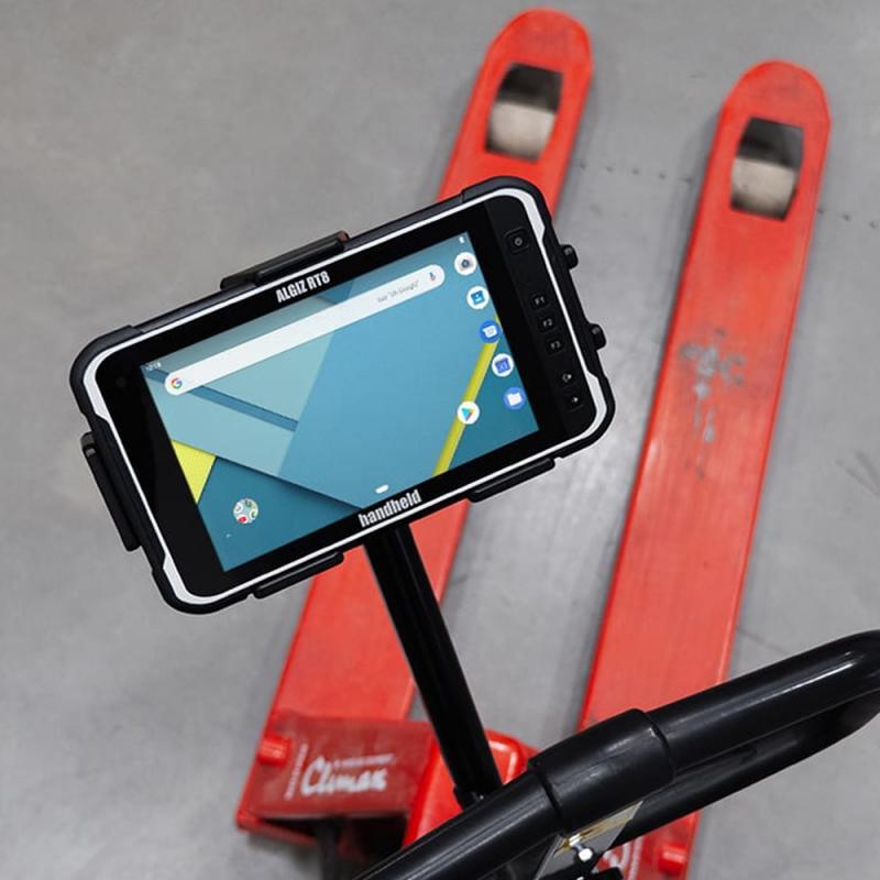 The Pallet Truck Mount (RT8-1035) by Handheld is a dedicated mounting solution for the Algiz RT8 tablet. It includes a mounting arm and cradle. Features wide mounting plates and long bolts so it fits most pallet trucks. Designed for warehouse workflows such as order picking and tracking.