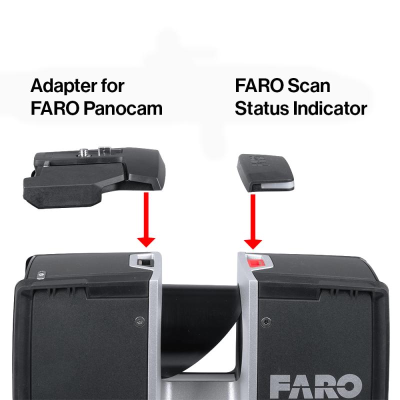 FARO PanoCam adapter for mounting Ricoh Theta Z1 panoramic camera on FocusS/Focus Premium scanners. Enables faster panoramic image capture. Includes adapter, 3mm Allen key, and assembly instructions.