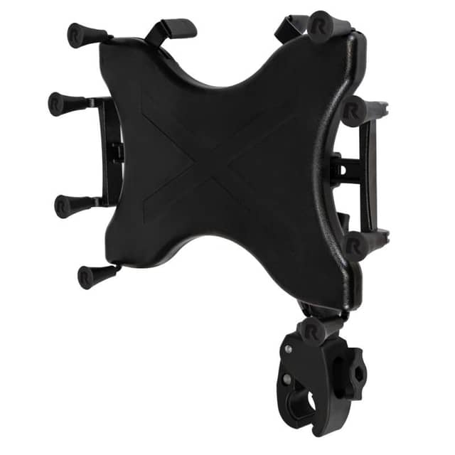 The Ram Mounts set includes a spring-loaded X-grip holder, long connecting arm with ball joint, and plastic retaining clip. Fits 9-11″ tablets and GPS poles with diameters from 1.60 to 3.81 cm. Secures your tablet without having to unpack and repack at every survey point.