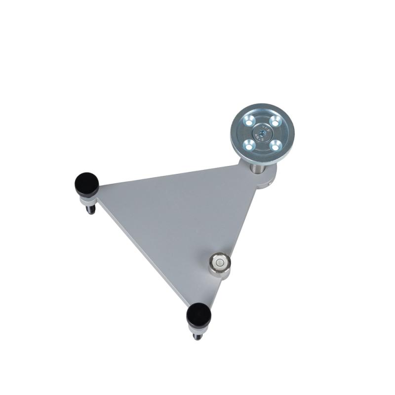 Mini tripod (650 g, 16×16×12 cm) for precise positioning of reference spheres and checkerboard targets above ground points. Height of sphere’s center: 200 mm (Ø145 mm sphere). Equipped with 2 adjustment screws and spirit level for vertical alignment. Stable, low center of gravity. For indoor/outdoor use.