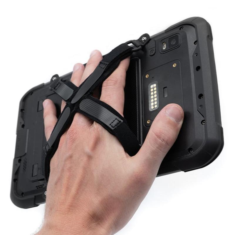 The standard hand strap for the Algiz RT8 offers a simple solution for holding the tablet securely. It features adjustable Velcro fasteners to fit most hand sizes, allowing comfortable one-handed use without bulk.