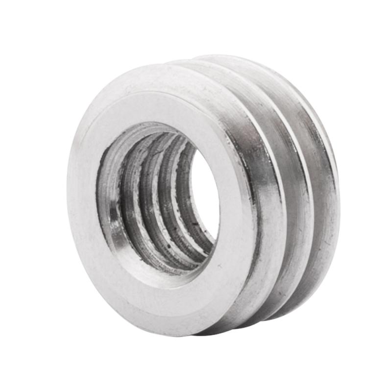 Compact adapter with 3/8" female thread and 5/8" male thread. Diameter 15.8 mm, thread length 8.5 mm, weight 6 g. Enables the use of tripods with 3/8" threads for devices requiring 5/8" threads, such as tribrachs, laser scanners, and surveying instruments. Compatible with survey and photo accessories (BSW thread type). Delivery content: 1 adapter.