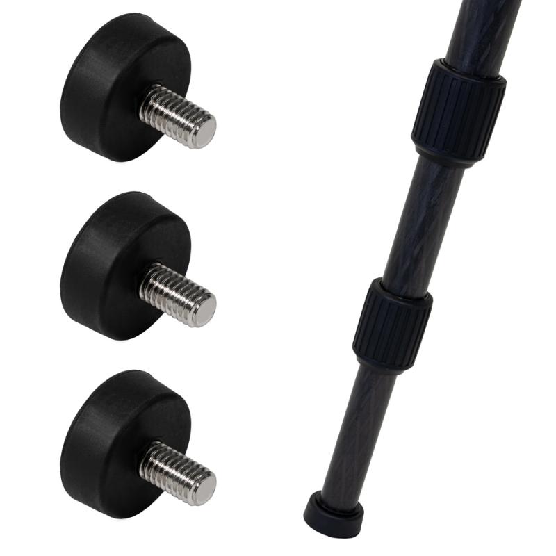 Robust carbon tripod with quick release for FARO Focus scanners. Extremely lightweight yet stable, reduces vibration, ideal for frequent travel. Features quick release with pan head and moving head disk for fast mounting/unmounting without stressing scanner’s horizontal drive. Tripod: 3/8" & 1/4" connections, 4 extendible segments, weight 2.43 kg, transport length 71 cm, height 40–177 cm, load 16 kg. Pan head: 111×70×37 mm, 0.35 kg, 8 kg load, 0–360° scale. Moving head disk: 70×38×10 mm, 43 g, rubberized support. Delivery: tripod, spikes, bag, quick release with pan head & disk.
