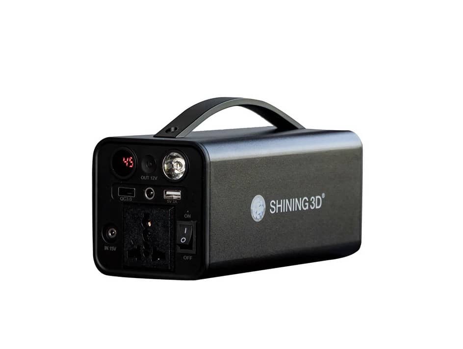 The Shining 3D Powerbank is an official portable battery designed to power EinScan series scanners in the field or when no mains supply is available. It provides extended mobility and reliable performance for long scanning sessions.