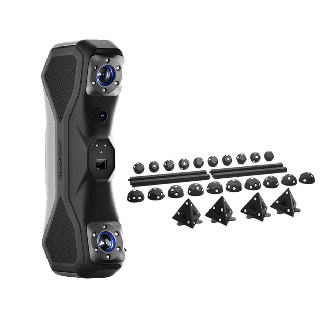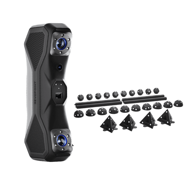Revopoint MetraX is a professional structured light 3D scanner designed for industrial and metrology applications. It delivers high accuracy up to 0.02 mm, scan speed up to 16 fps, and supports objects from 1 cm to 5 m. Compatible with Windows, macOS, and Android/iOS. Includes tripod, turntable, USB-C cable, and calibration tools.