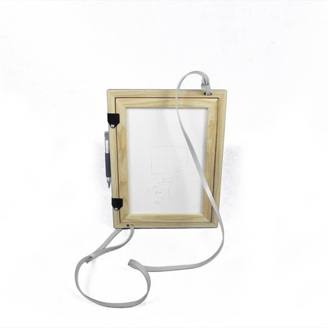 Robust wooden field book frame (ash wood) with aluminum underlay and transparent cover plate for A4 sheets. Protects documents from wetness, includes adjustable strap, pen loop, and high stability hinge. Ideal for field notes, surveying, and civil engineering.