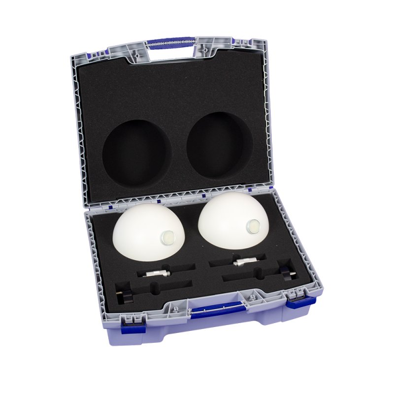 Set of 2 FLEXI XXL reference spheres Ø200 mm with accessories in protective case (575×470×270 mm). Made of unique materials with special reflective coating (not painted) and integrated shock absorber, ensuring robustness and durability. High precision geometry suitable for laser scanning and stripe-light scanners. Includes M8 female thread adapters, 2 magnet holders, optional tripod and prism pole adapters. Operating range: -40 °C to +75 °C. Compatible with FARO Focus (all models), Leica RTC360/BLK360/P-series, Trimble X7/TX5, Z+F IMAGER, GeoSLAM, Surphaser, Artec Ray, Teledyne Polaris, Riegl (on request). Delivery content: 2 XXL Flexi spheres + 2 magnets + adapters + case.