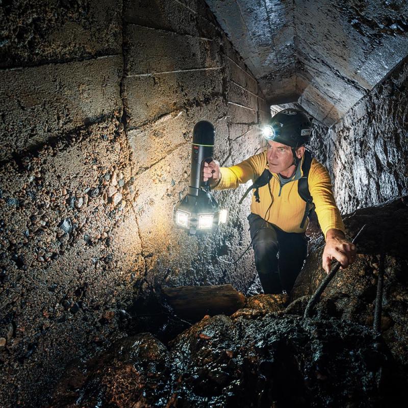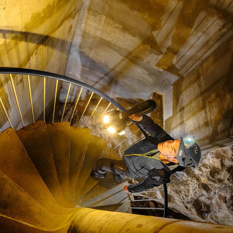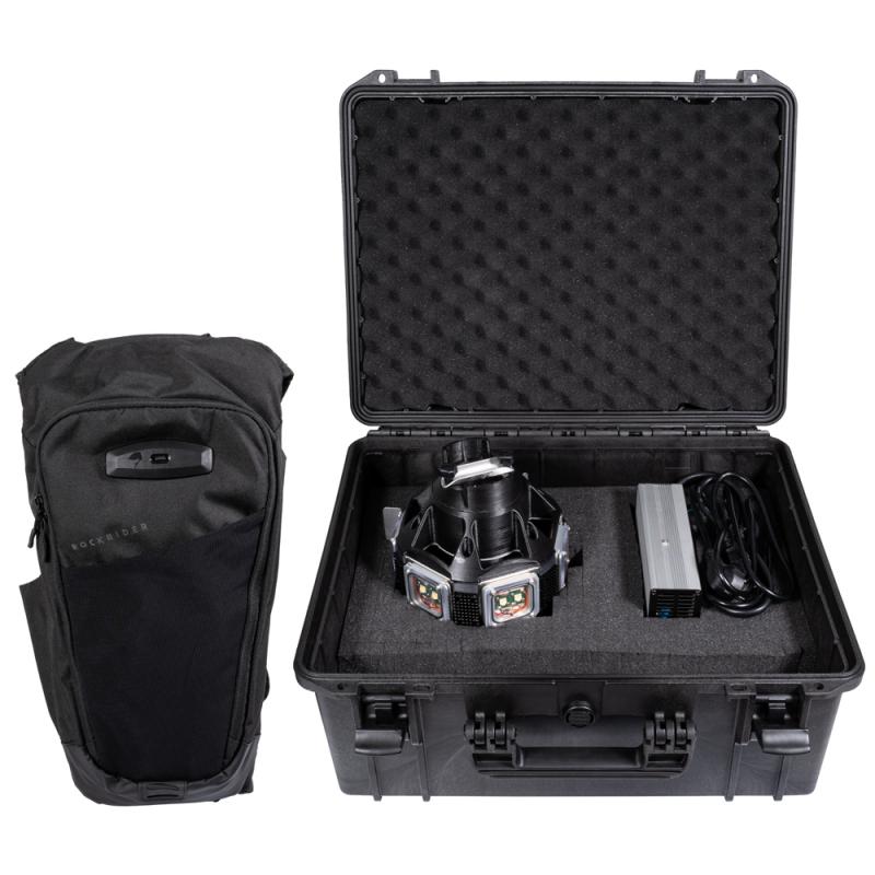 Specially developed floodlight for Leica BLK2GO. Provides homogeneous illumination (up to 7500 lm), ensuring high-quality colored scans even in caves or dark environments. Includes lithium-ion battery (378Wh), charger, and backpack.